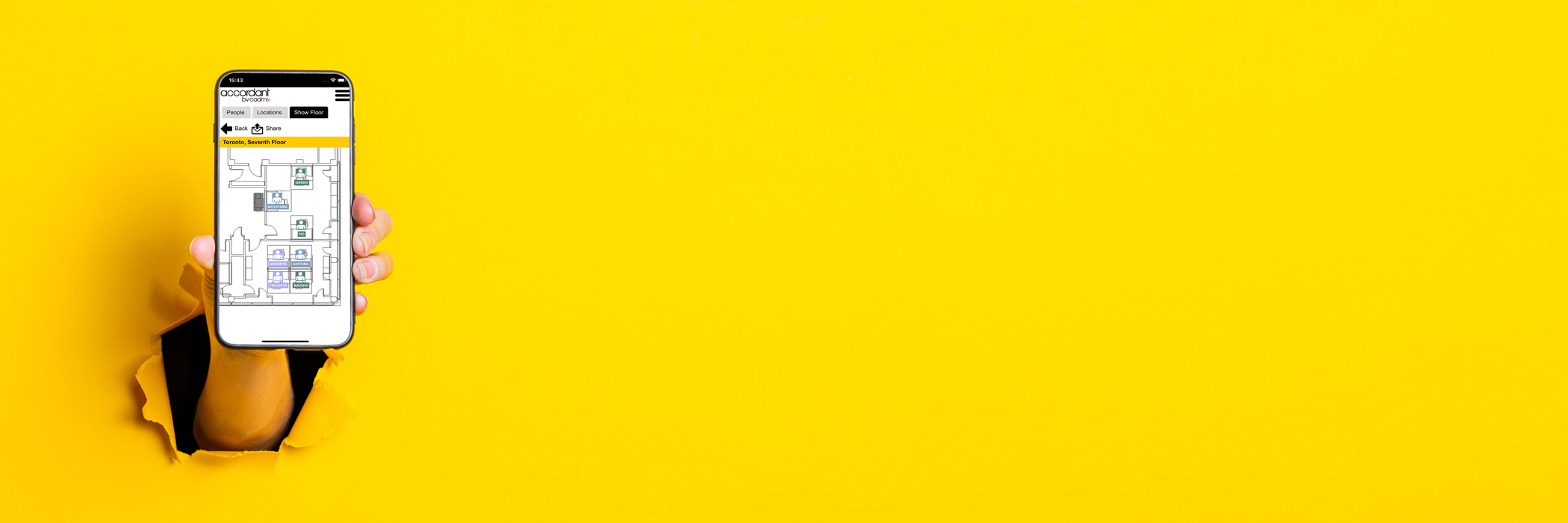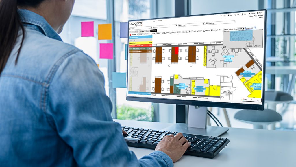 Accordant has a simple to use wayfinder interface that makes locating people, places and things as simple as typing in some information and receiving instant results. These can be displayed in several different formats, and contains useful information such as location and contact information.